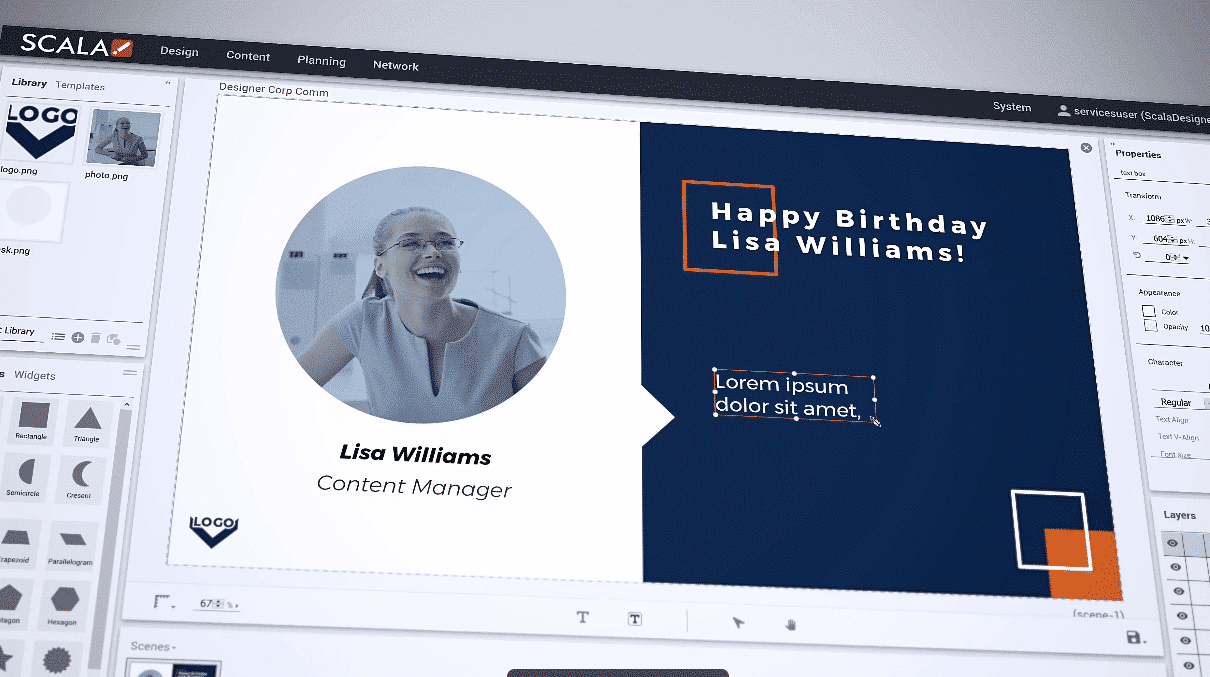 MALVERN, PA, US—November 2, 2020 Scala today announced the release of Scala Designer Cloud, a powerful web-based composition and design tool featuring an easy-to-use, intuitive user interface that enables creation of compelling and engaging digital signage media. Scala first introduced Scala Designer, the PC-based software made for digital signage, more than 20 years ago as part of its core digital signage platform, Scala Enterprise. Today, Designer Cloud is the next evolution in the progression of a proven application that powers millions of digital signs worldwide.