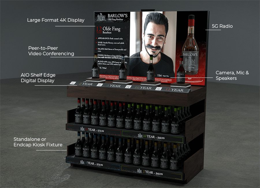 Shoppers need more information to make certain purchases, but help is not always available. The ASK fixture eliminates this problem by providing key product information where shoppers need it most. Featured content can incorporate features of online shopping, such as live product reviews or comparisons. They can also connect shoppers directly with subject matter experts via one-on-one video conferencing or a library of on-demand videos, helping retailers provide a higher level of service with reduced headcount.